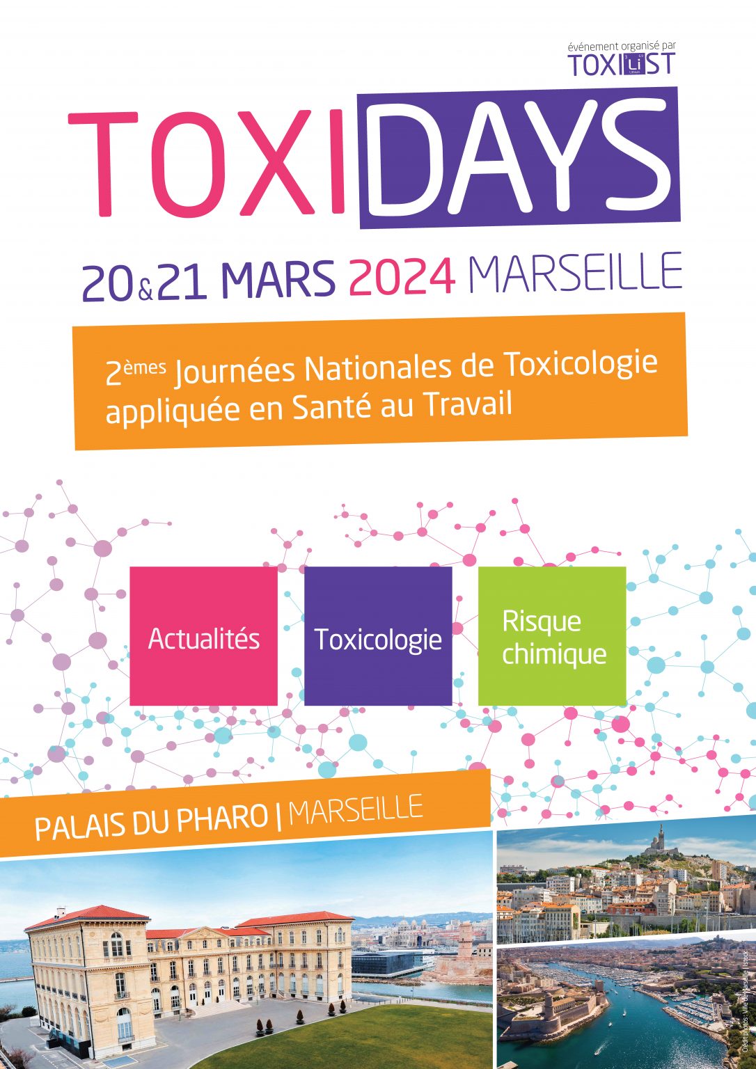 Les 20 et 21 mars 2024, au Palais du Pharo de Marseille, auront lieu les 2èmes Journées Nationales de Toxicologie appliquée en Santé au Travail.